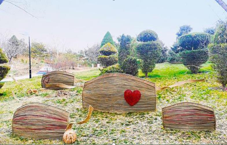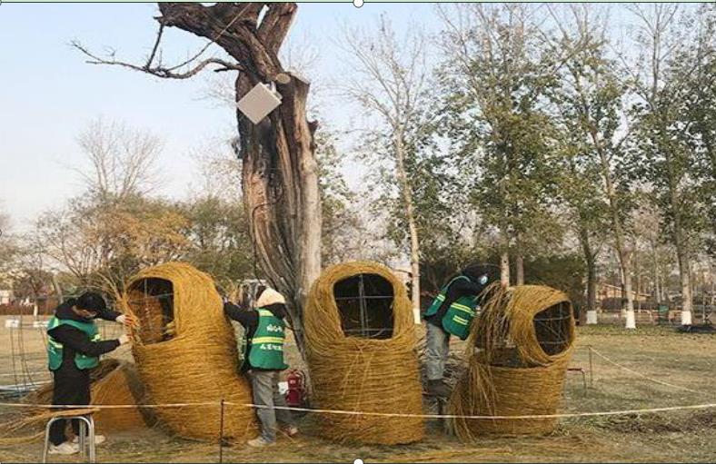 地景藝術(shù)以“生態(tài)環(huán)保、循環(huán)利用、變廢為寶”為理念,以園林廢棄物如柳樹(shù)枝、海棠枝、竹枝、桃枝等為主材料,通過(guò)設(shè)計(jì)師之手把這些變成了一個(gè)個(gè)栩栩如生的作品,為冬季景觀增色添彩。