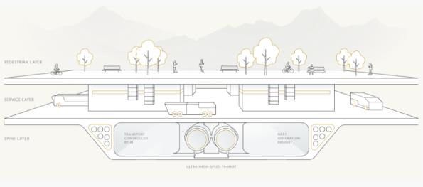 根據(jù)官方公告,“THE LINE”將是一個(gè)全新的創(chuàng)新型城市,城市的基礎(chǔ)設(shè)施擁有現(xiàn)在那些城市無(wú)法比擬的效率和可持續(xù)性,并且所有的交通、網(wǎng)絡(luò)和公共事業(yè)都將在不可見層運(yùn)行的專用空間中。