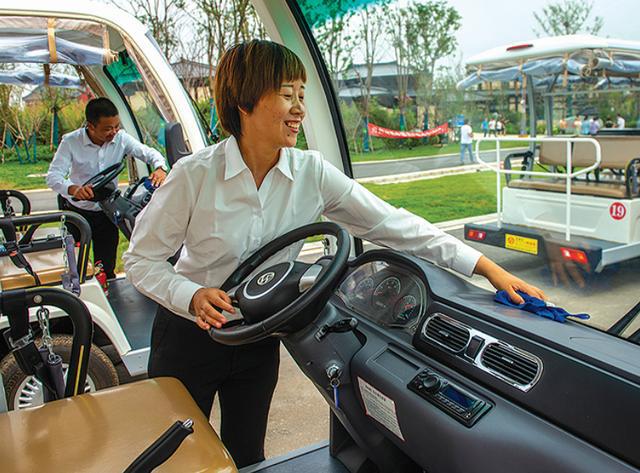 雄安郊野公園游客觀光車的司機(jī)準(zhǔn)備接待游客。