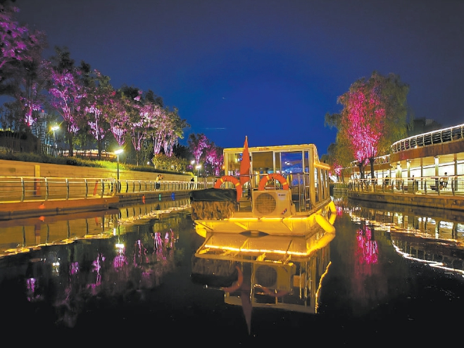 寸土寸金的東四環(huán),也將可泛舟夜賞。本周六,亮馬河燕莎橋至朝陽公園段正式通船,并開通夜賞航線,京城再添風(fēng)情水岸。